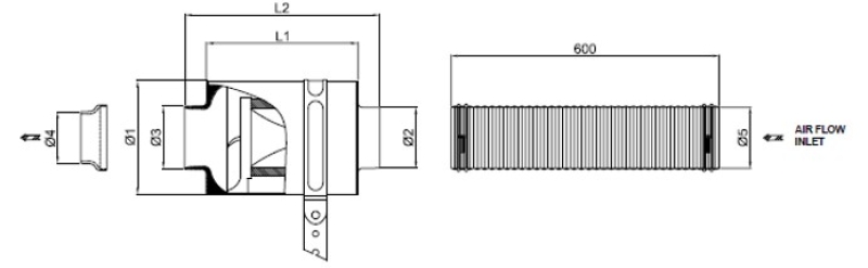Le kit est fourni avec une gaine flexible en aluminium (longueur 60 Cm) qui permettra d’établir une prise d’air forcée coté calandre pour améliorer l’arrivée de l’air.