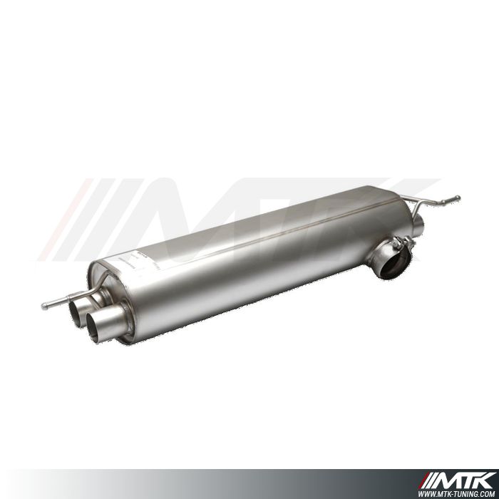 Ce Cat-Back sport de qualité s'installe après le Filtre à particule et dispose d'une sonorité sportive grâce a l'intermédiaire avec pare flamme, les normes de pollution sont ainsi respectées.